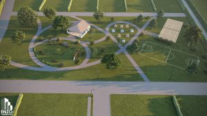 Canchas deportivas de Futbol, basquetball, Senderos, Gimnasio al aire libre.